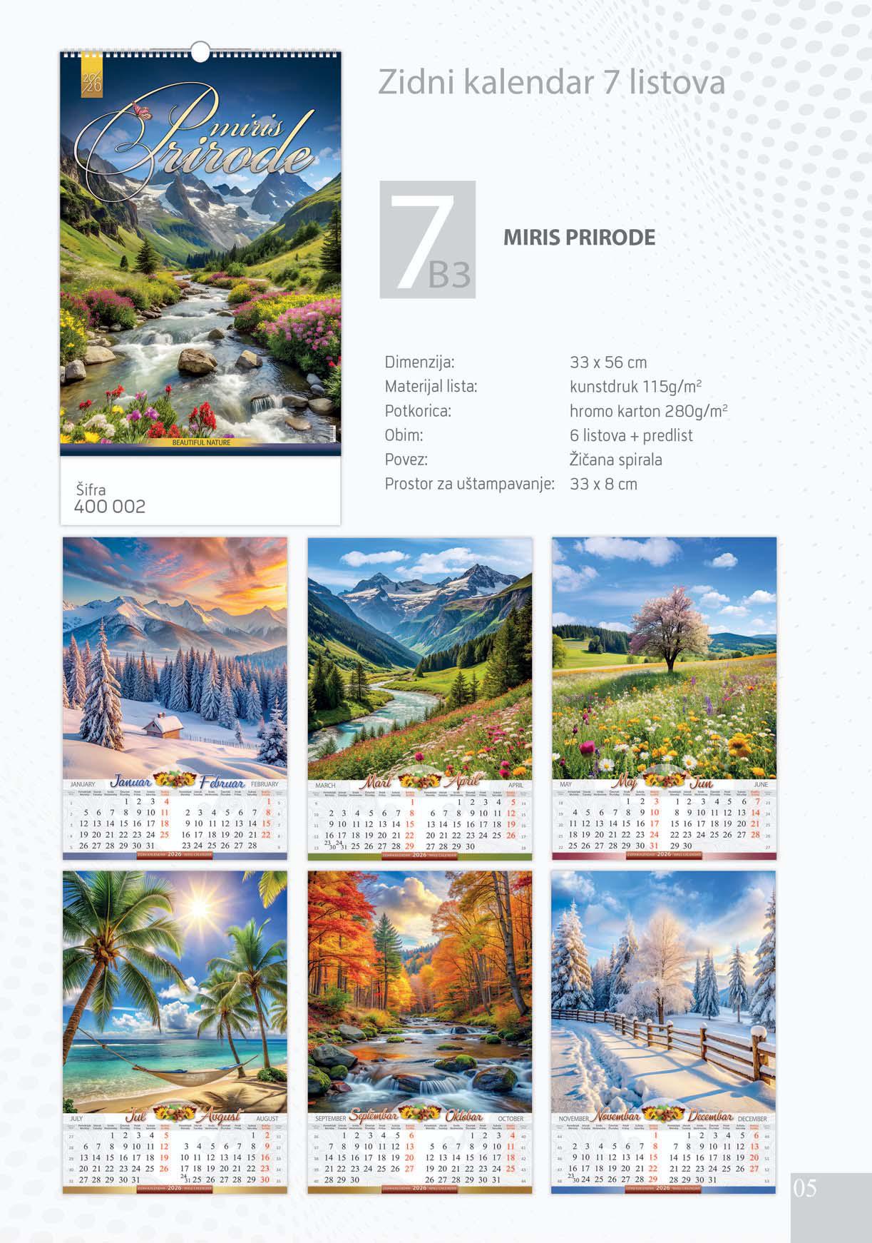 Dimenzija: 33x56 cmMaterijal lista: Kunstdruk 115g/m2Potkorica: Hromo karton 300g/m2Obim: 6 listova + predlistPovez: Žičana spiralaProstor za uštampavanje: 33x8 cm
