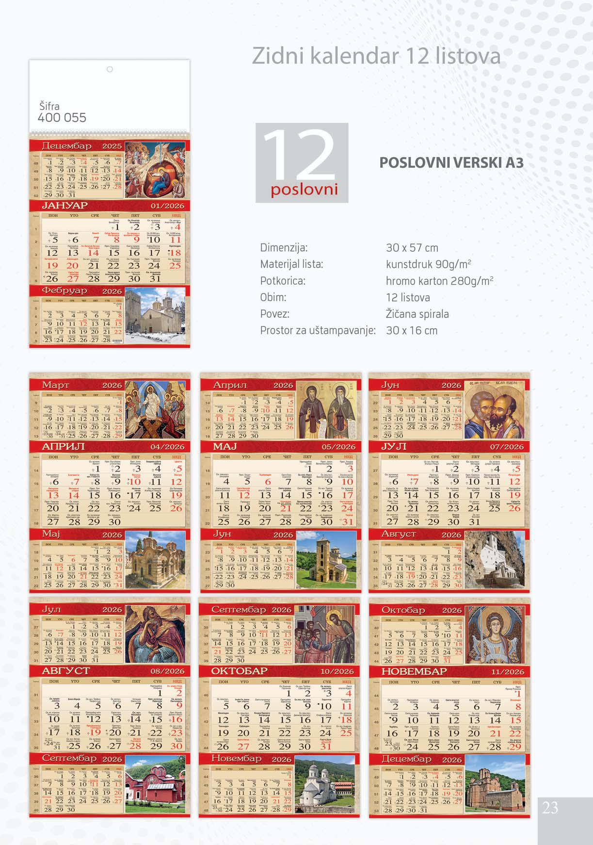Zidni poslovni kalendar A3 formata sa verskim motivom