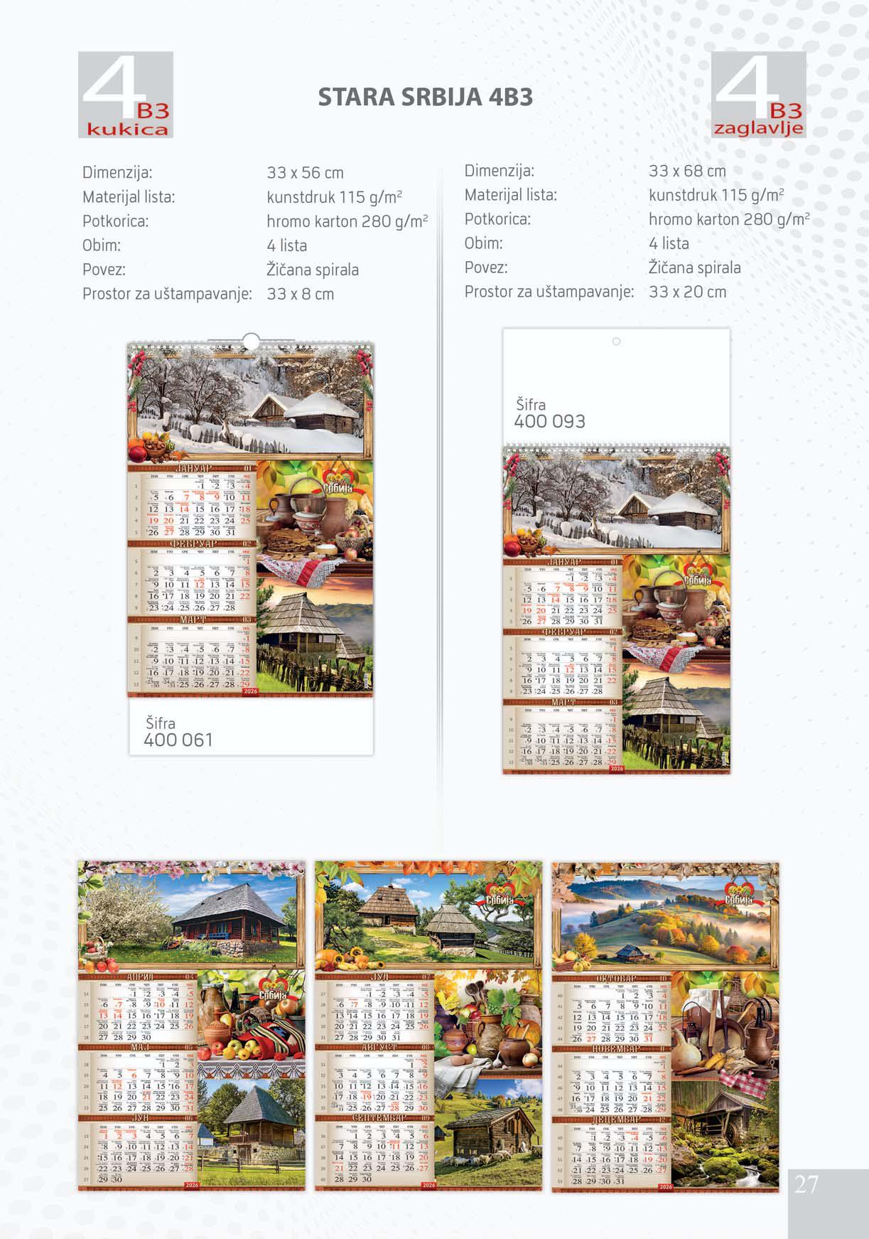 Dimenzija: 33 x 68 cmMaterijal lista: Kunstdruk 115g/m2Potkorica: Hromo karton 300g/m2Obim: 4 listaPovez: Žičana spiralaProstor za uštampavanje: 33 x 20 cm