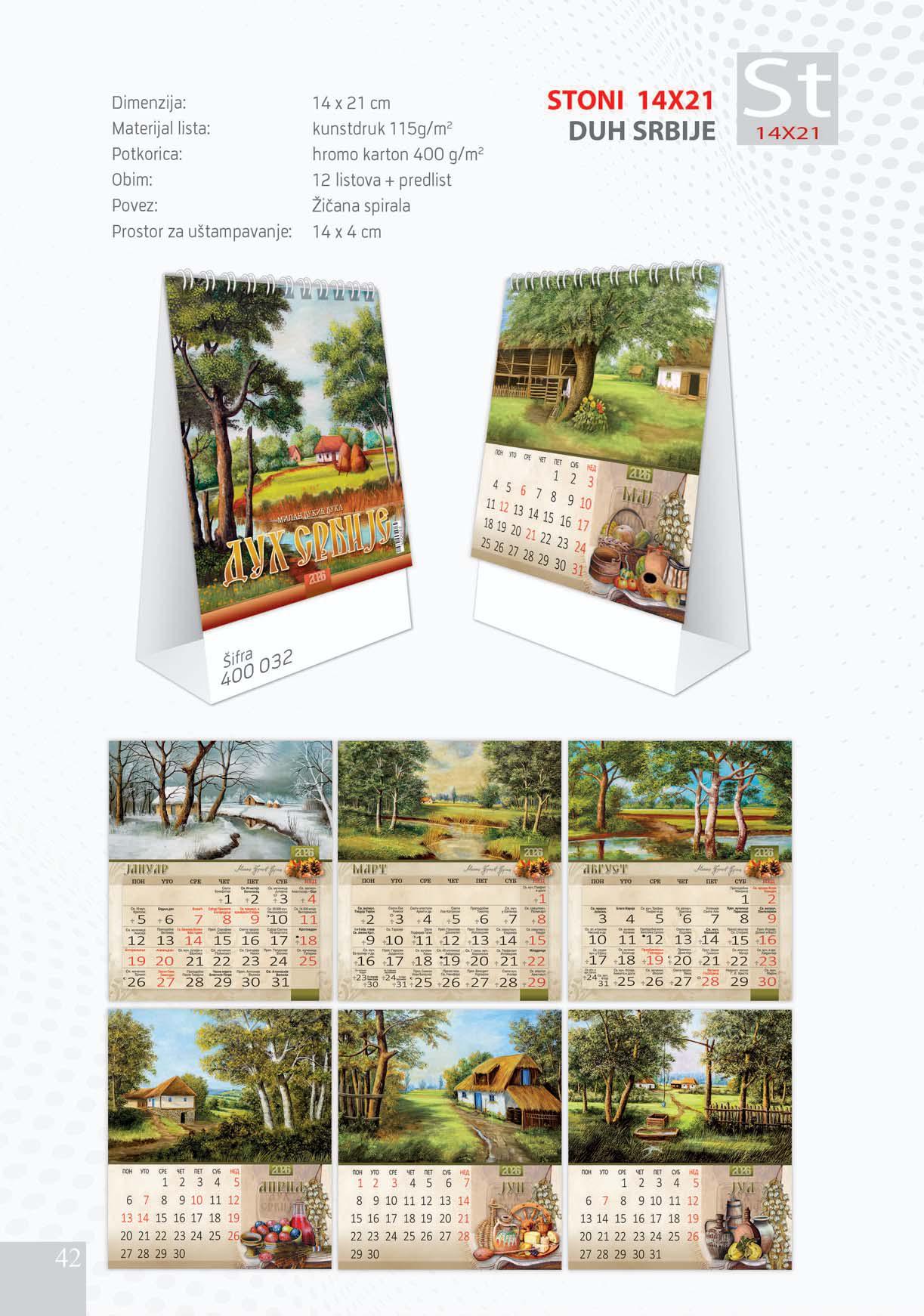 Stoni kalendar: 12 listova + predlist sa žičanom spiralom
