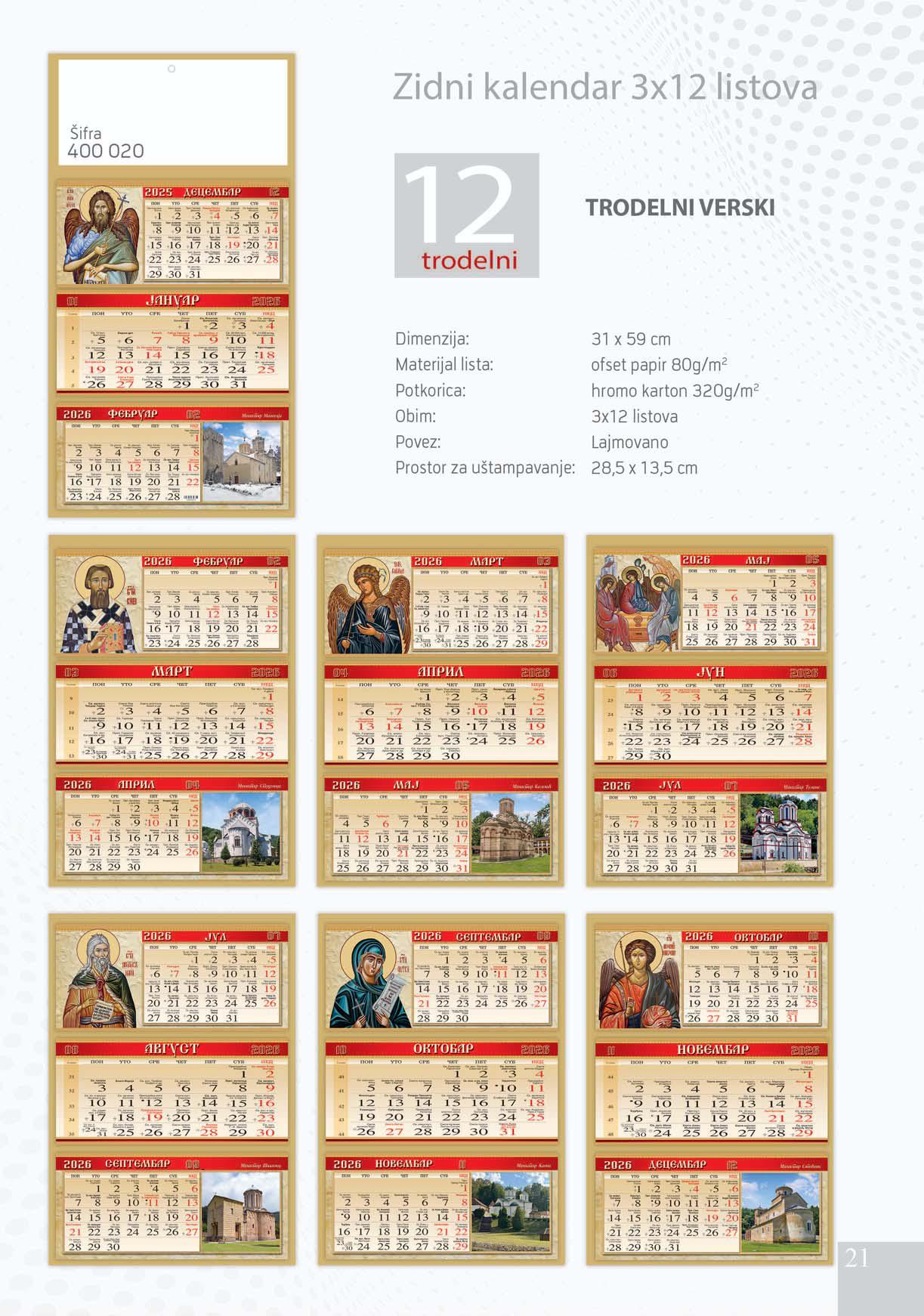 Dimenzija: 31 x 59 cmMaterijal lista: Kunstdruk 80g/m2Potkorica: Hromo karton 320g/m2Obim: 3x12 listaPovez: LajmovanoProstor za uštampavanje: 23,5 x 13,5 cm