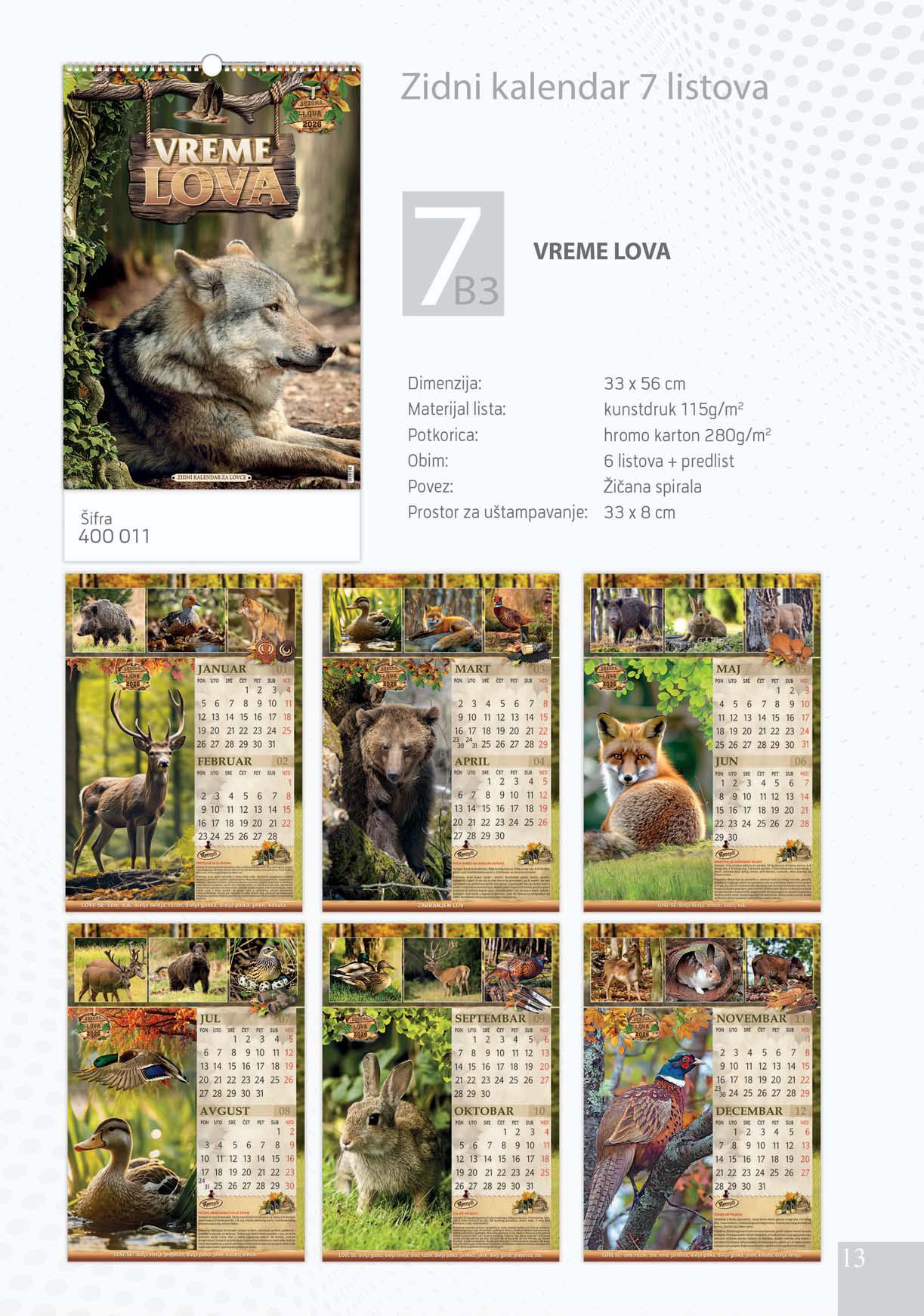 Dimenzija: 33x56 cmMaterijal lista: Kunstdruk 115g/m2Potkorica: Hromo karton 300g/m2Obim: 6 listova + predlistPovez: Žičana spiralaProstor za uštampavanje: 33x8 cm