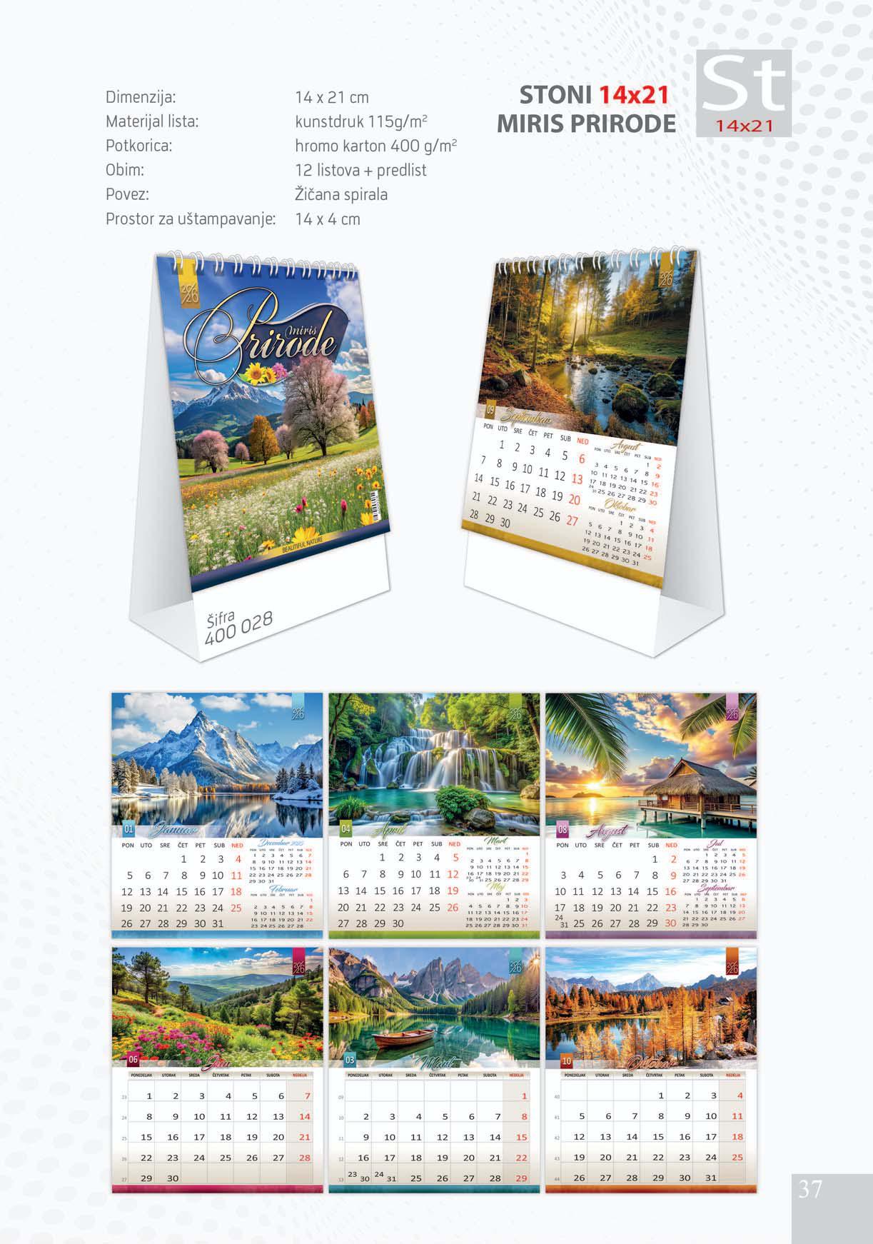 Stoni kalendar: 12 listova + predlist sa žičanom spiralom