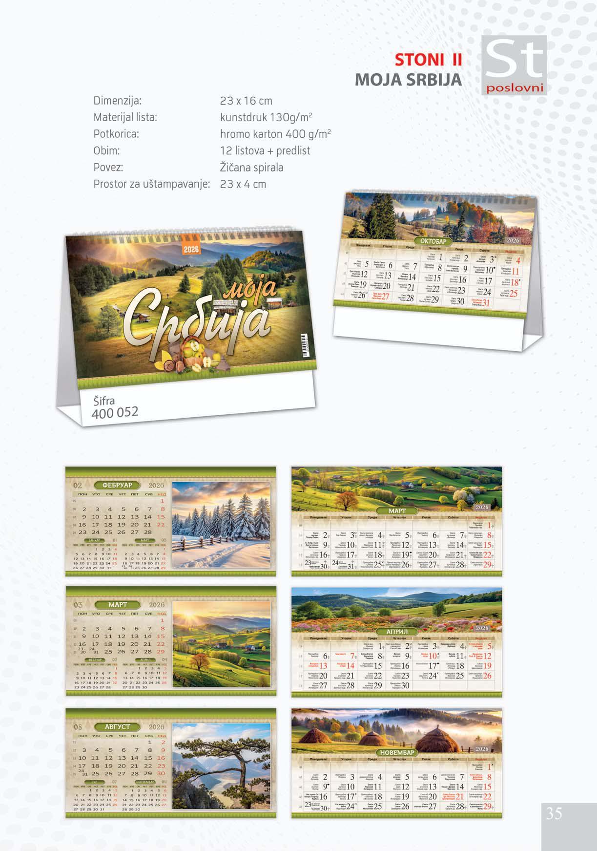 Stoni kalendar: 12 listova + predlist sa žičanom spiralom